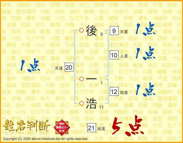 後一浩さんの総運は21画の5点!