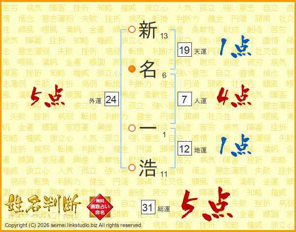 新名一浩さんの総運は31画の5点!
