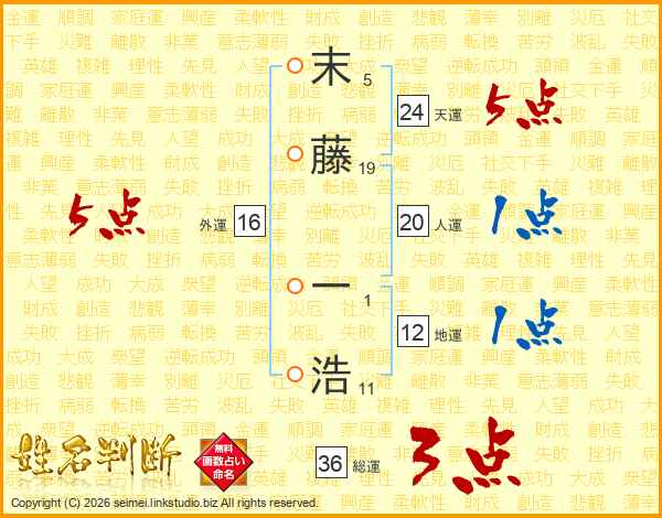 末藤一浩さんの総運は36画の3点!