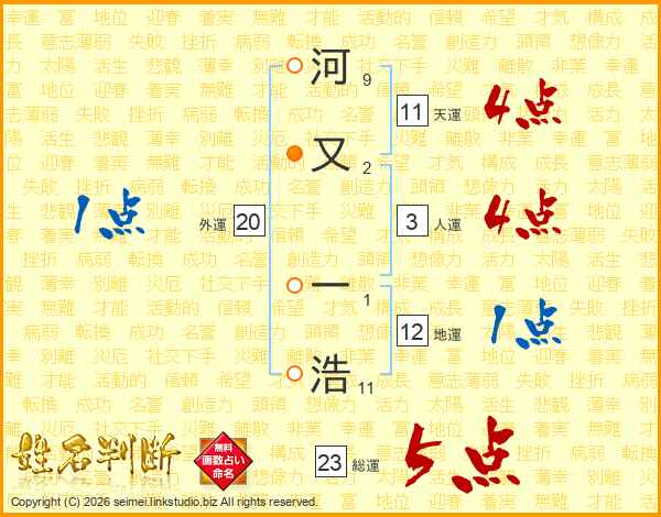 河又一浩さんの総運は23画の5点!