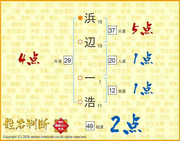 浜辺一浩さんの総運は49画の2点!