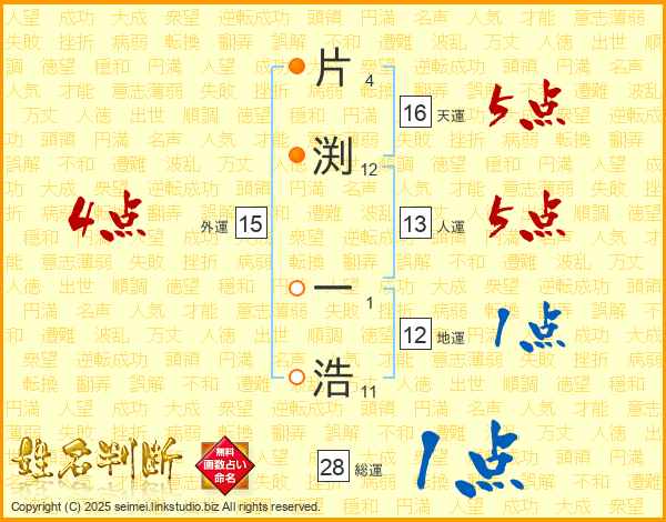 片渕一浩さんの総運は28画の1点!