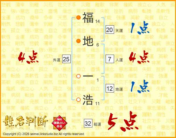 福地一浩さんの総運は32画の5点!