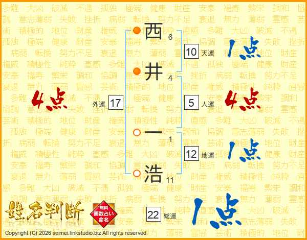 西(6画)井(4画) 一(1画)浩(11画)