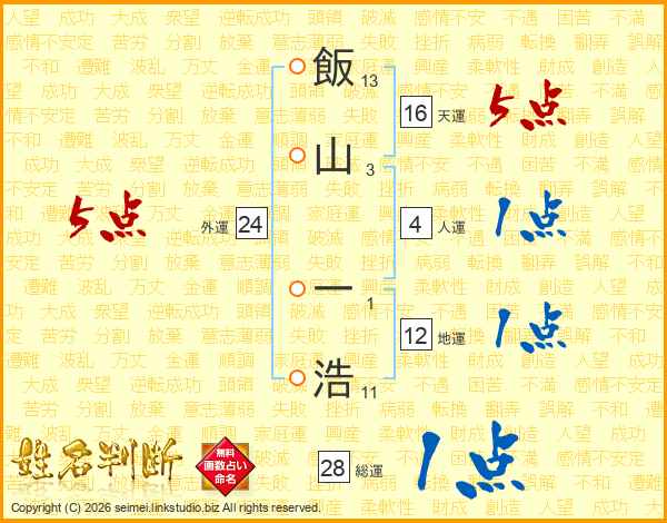 飯山一浩さんの総運は28画の1点!