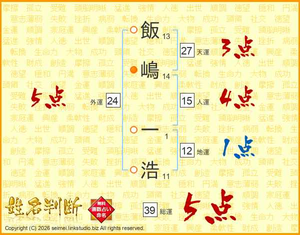 飯嶋一浩さんの総運は39画の5点!