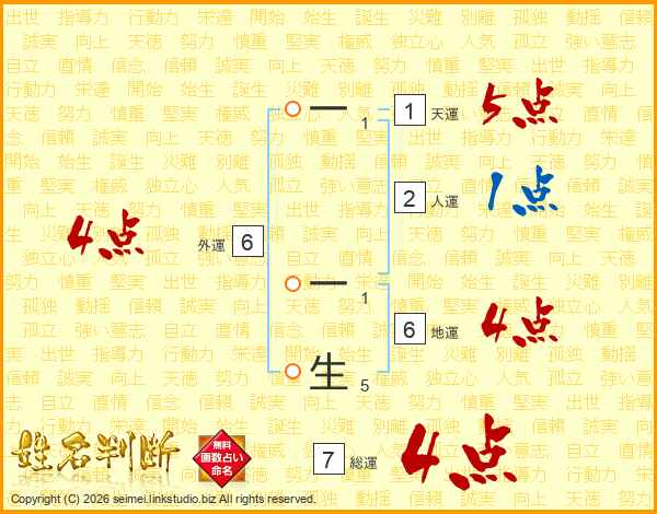 一一生さんの総運は7画の4点!