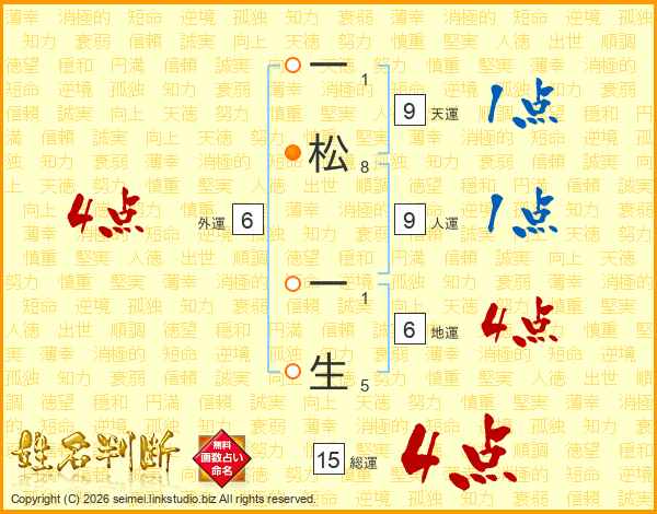 一松一生さんの総運は15画の4点!