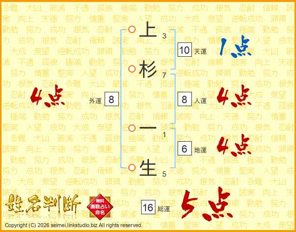 上杉一生さんの総運は16画の5点!
