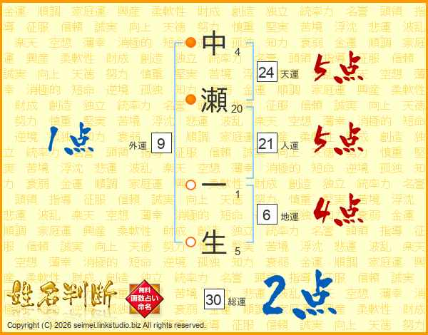 中瀬一生さんの総運は30画の2点!