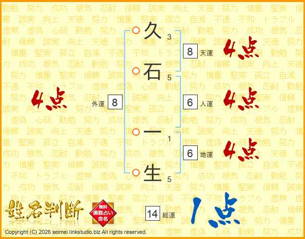 久石一生さんの総運は14画の1点!