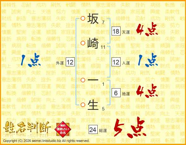 坂崎一生さんの人運は12画の1点!