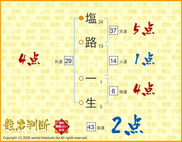 塩路一生さんの人運は14画の1点!