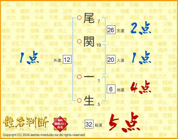 尾関一生さんの総運は32画の5点!