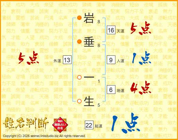 岩垂一生さんの総運は22画の1点!