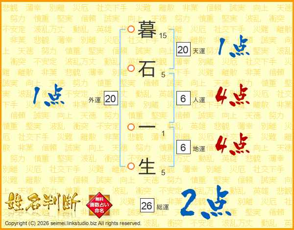 暮石一生さんの総運は26画の2点!