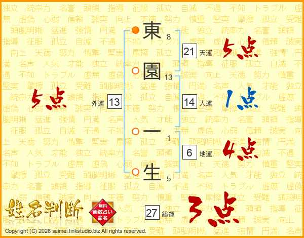 東園一生さんの天運は21画の5点!