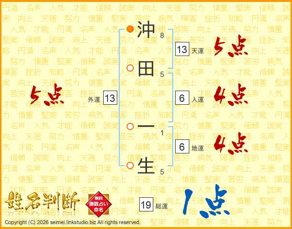 沖田一生さんの外運は13画の5点!