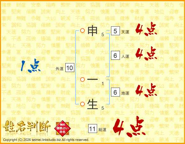 申一生さんの総運は11画の4点!