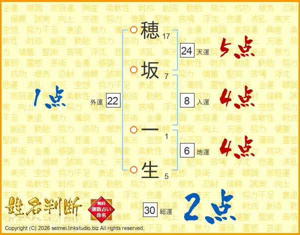 穂坂一生さんの総運は30画の2点!