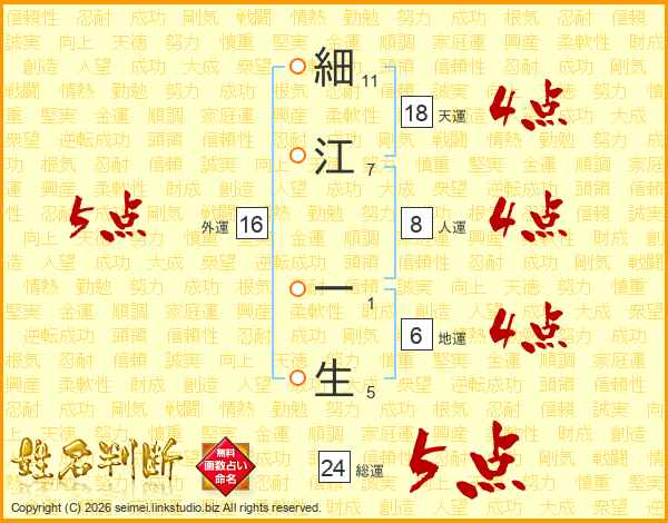 細江一生さんの総運は24画の5点!