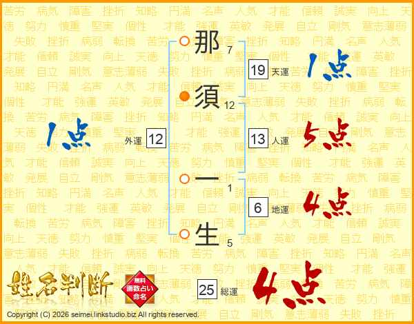 那須一生さんの人運は13画の5点!