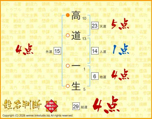 高道一生さんの総運は29画の4点!