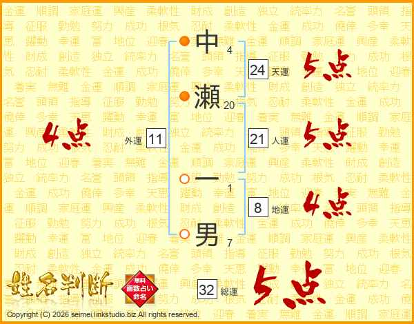 中瀬一男さんの総運は32画の5点!