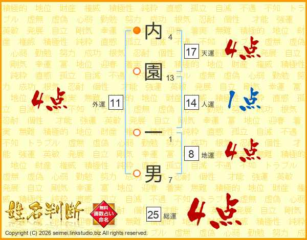 内園一男さんの天運は17画の4点!