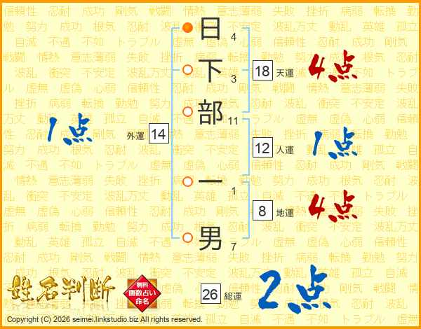 日下部一男さんの天運は18画の4点!