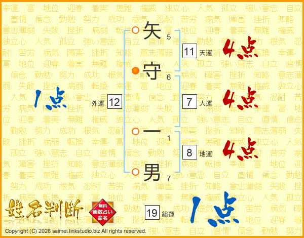 矢守一男さんの天運は11画の4点!