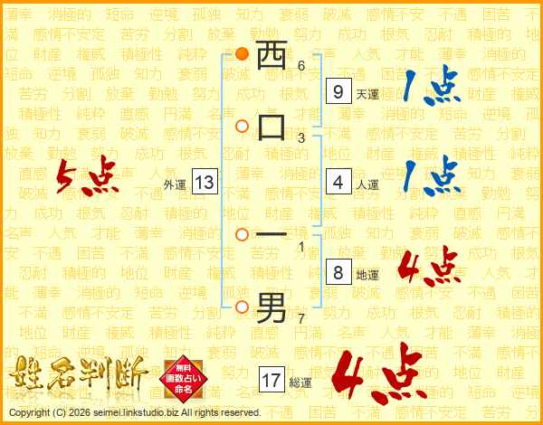 西口一男さんの総運は17画の4点!
