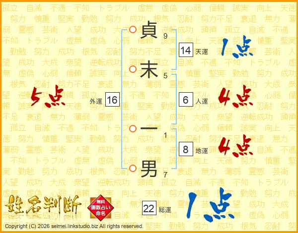 貞末一男さんの総運は22画の1点!