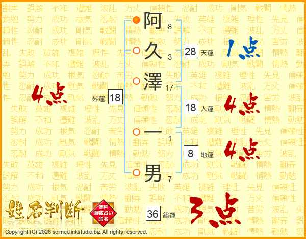 阿久澤一男さんの外運は18画の4点!