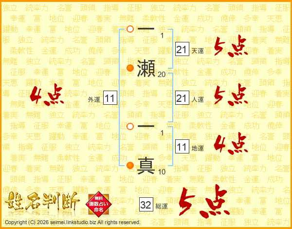 一瀬一真さんの総運は32画の5点!