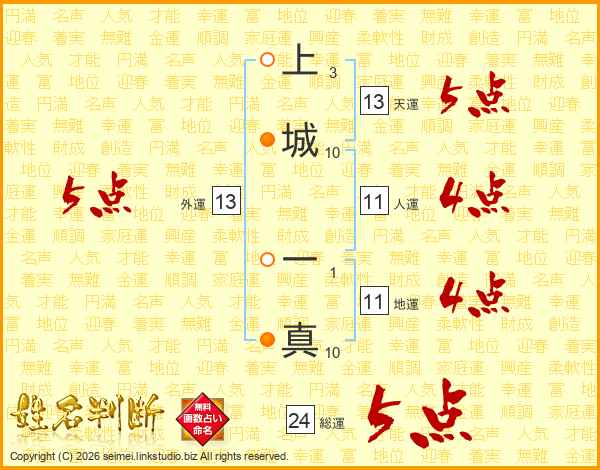 上城一真さんの総運は24画の5点!