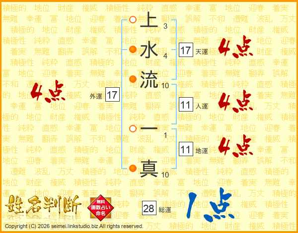 上水流一真さんの人運は11画の4点!