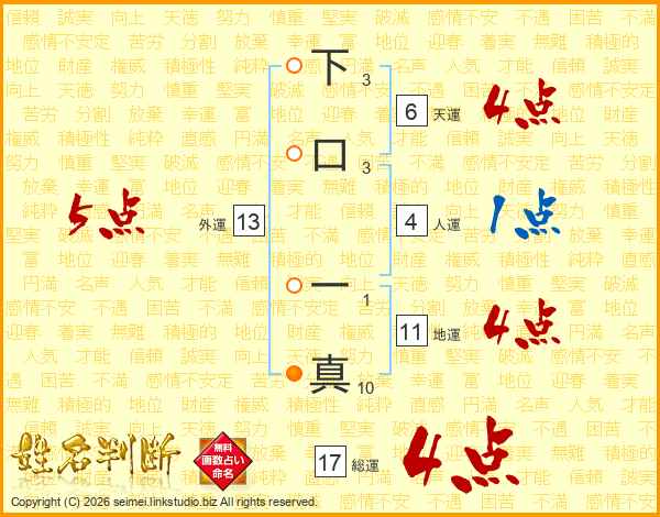下口一真さんの総運は17画の4点!