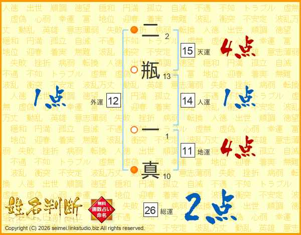二瓶一真さんの総運は26画の2点!