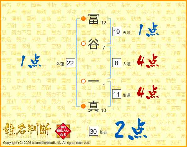 冨谷一真さんの総運は30画の2点!