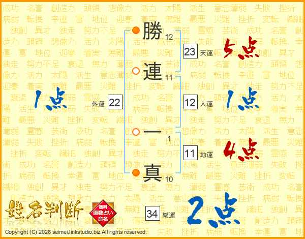 勝連一真さんの総運は34画の2点!