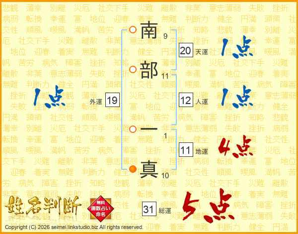 南部一真さんの総運は31画の5点!