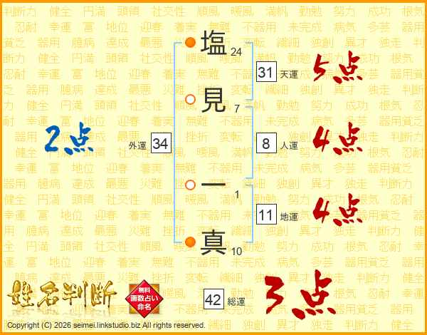 塩見一真さんの天運は31画の5点!