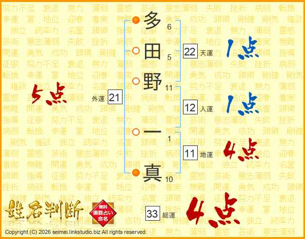 多田野一真さんの総運は33画の4点!