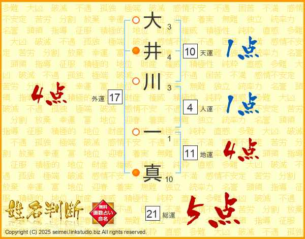 大(3画)井(4画)川(3画) 一(1画)真(10画)