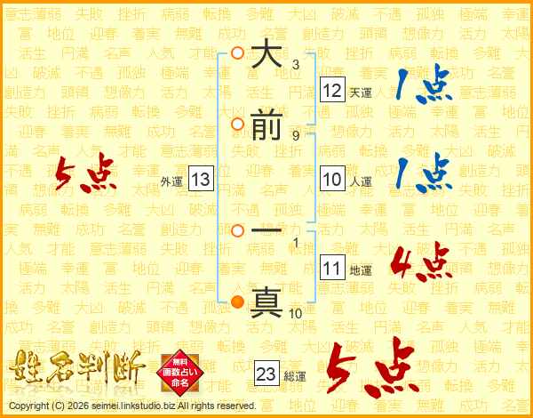 大前一真さんの総運は23画の5点!
