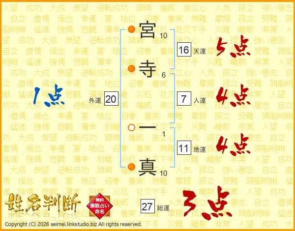 宮寺一真さんの総運は27画の3点!