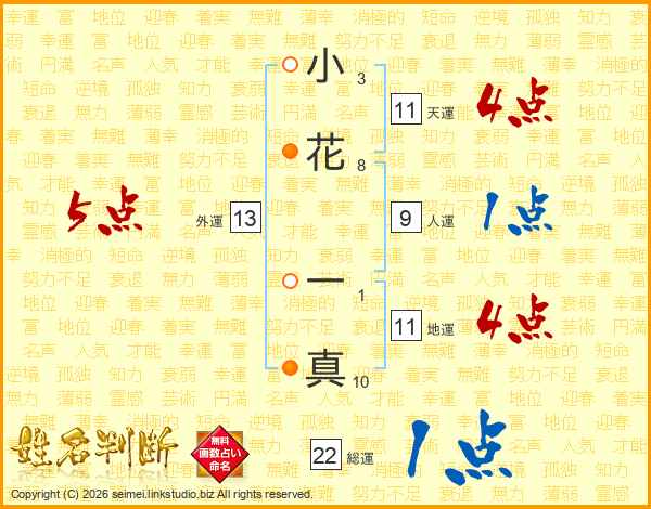 小花一真さんの総運は22画の1点!