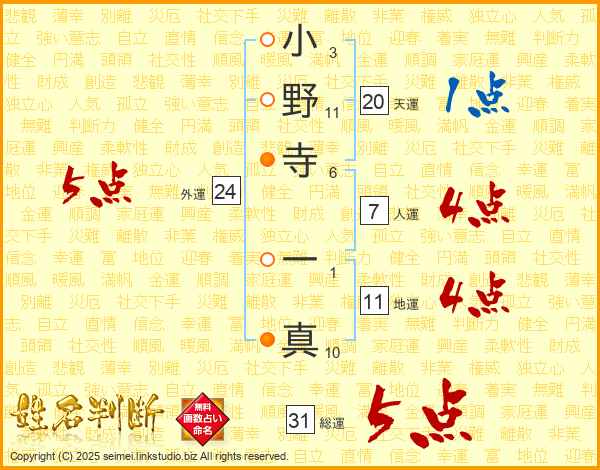 小野寺一真さんの総運は31画の5点!