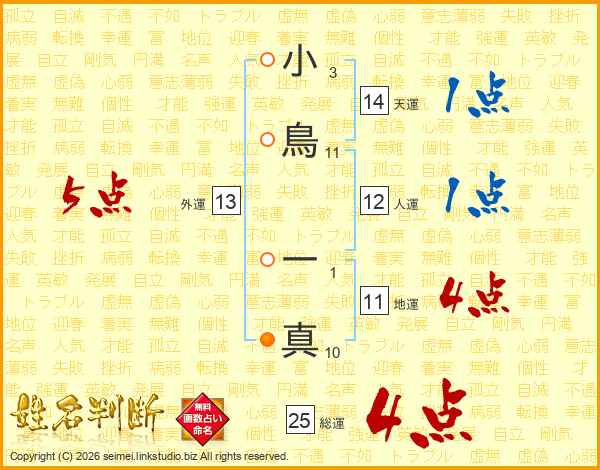 小鳥一真さんの総運は25画の4点!